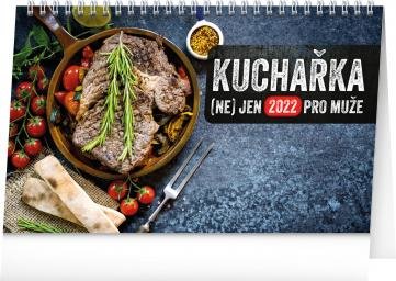Jak naučit muže vařit? Poraďte mu s 53 jednoduchými recepty z našeho stolního kalendáře. Recepty přednostně používají dostupné české suroviny, uvádějí počet připravovaných porcí, dobu přípravy pokrmu a orientační cenu. Každý recept je doplněn fotografií výsledného pokrmu. Týdenní kalendárium s prostorem pro poznámky obsahuje také svátky, památné dny, fáze měsíce a přehled na celý rok.