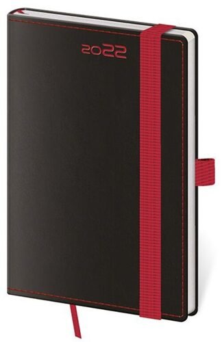 Diář 2022 týdenní kapesní Black Red s poutkem na propisku