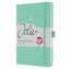 Stylový diář Jolie, je uzavíratelný na gumičku, vybavený praktickou papírovou kapsou na zadní straně a poutkem na pero.