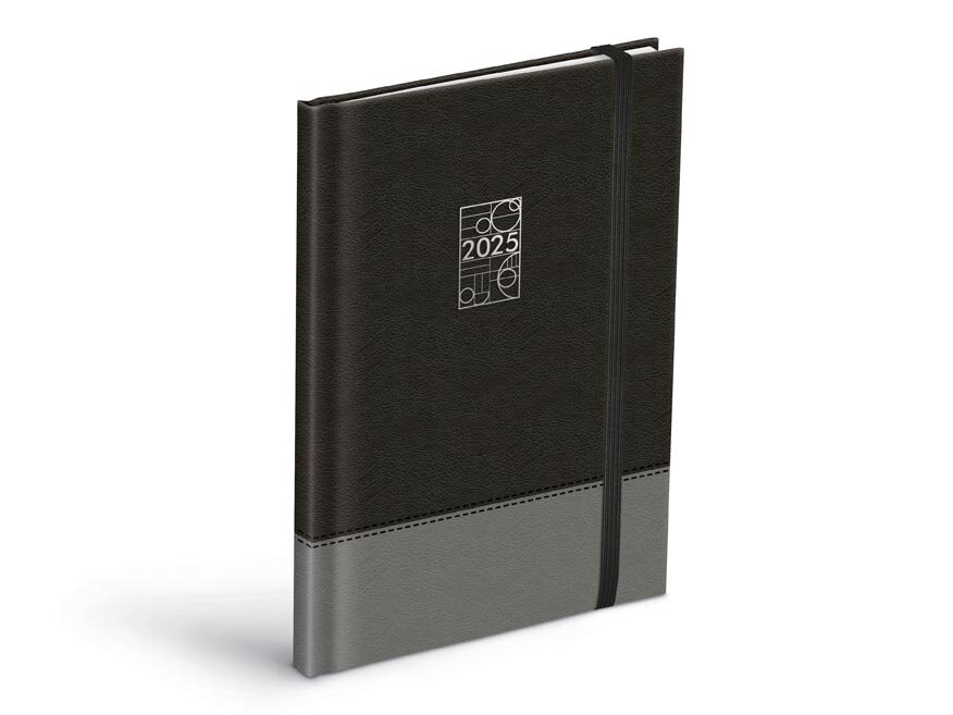 Týdenní diář pro rok 2025 ve formátu A5 s uzavíráním na gumičku, v kombinaci černé a šedé barvy. Povrch obálky je vyroben z měkčeného materiálu příjemného na dotek. Je výborným pomocníkem pro organizování Vašeho času.DIÁŘ OBSAHUJE:- roční přehled roku- plánovací kalendář- čtvrtletní plánovací...