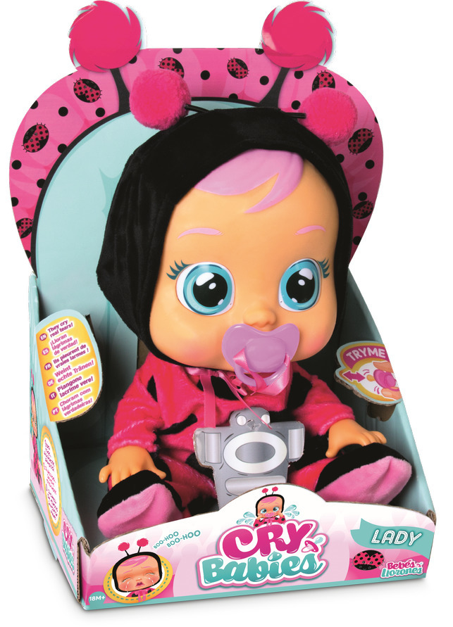 Krásná miminka Cry Babies potřebují někoho, kdo je bude mít rád! Přitulte se, dejte jim dudlík a ihned se uklidní. Cry Babies roní skutečné slzy a vydávají přitom skutečné zvuky plačícího dítěte. Aby panenka začala plakat, nalijte vodu do speciální nádobky umístěné v zadní části hlavy a stiskněte tlačítko pod nádobkou nebo zapněte panenku a vytáhněte dudlík z její pusinky. Provoz na 2xLR03/AAA 1.5V, jsou součástí balení.