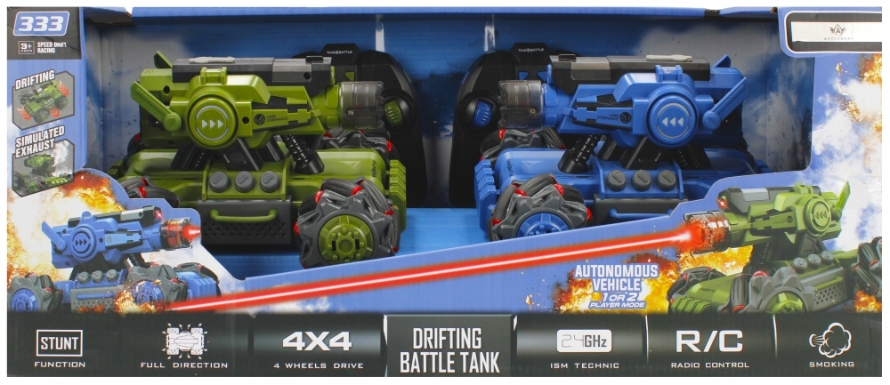 Zalety produktu: jazda w prawo/lewo/, jazda w przód/tył, obroty o 360 stopni, jazda lewy/prawy bok, funkcja pary wodnej, efekty dźwiękowe oraz świetlne, czołgi sterowane za pomocą pilotów, posiadają na kołach rolki dzięki czemu potrafią poruszać się również w bok. Te niesamowite czołgi poza...