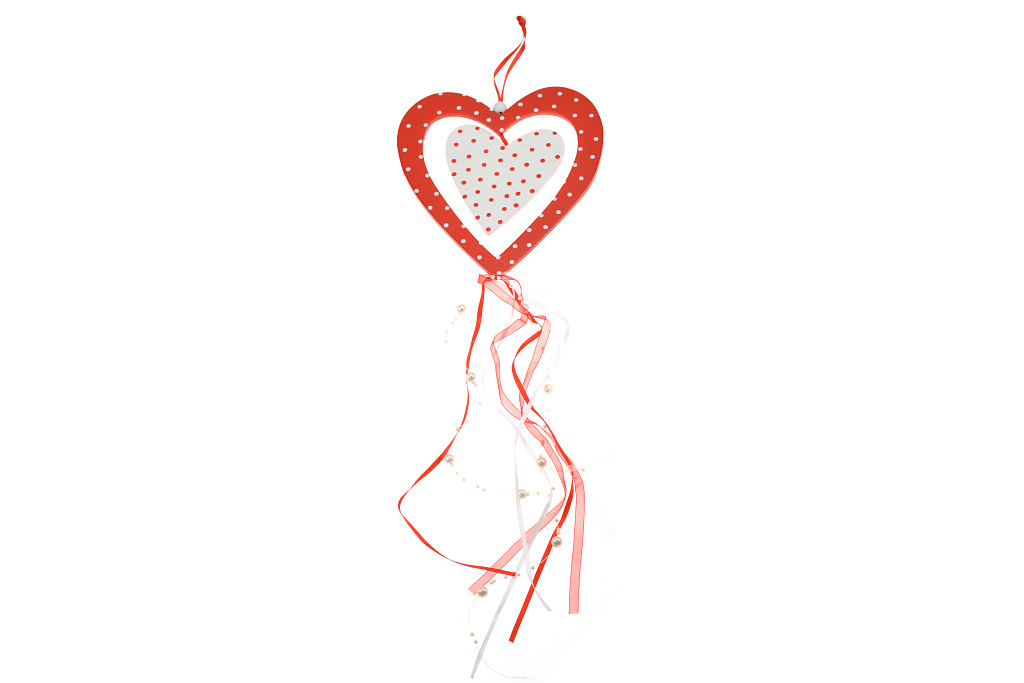 Krásná Valentýnská dekoraceDřevěnné srdíčko se stuhami a korálky Závěsné dekorační srdíčkoRozměr srdíčka je přibližně 19cmCelková délka dekorace včerně závěsné šňůrky a stuh s korálky je přibližně 60cm przeczytaj całość
