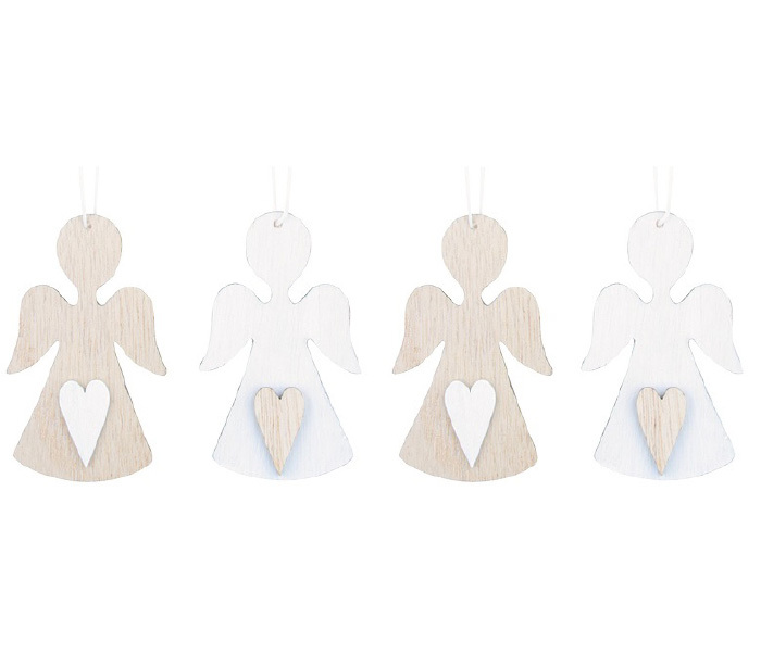 Dekorace vánoční k zavěšení dřevěná - anděl 7cm, 4ks