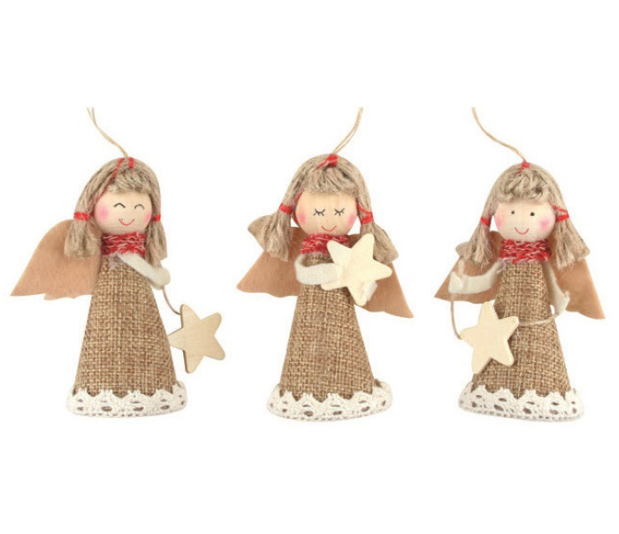 Dekorace vánoční k zavěšení jutová - anděl s hvězdou 8cm mix