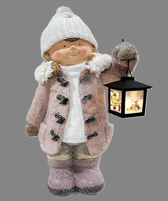 Holka v kabátku s LED lucernou