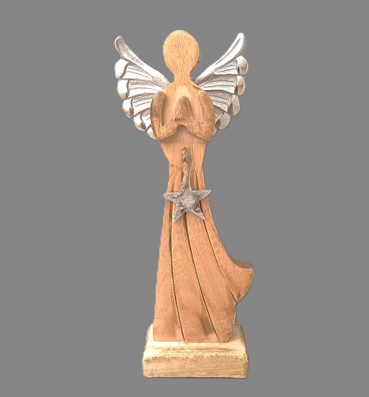 Anděl dřevo kovová křídla 32cm