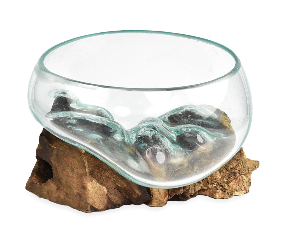 Tato skleněná mísa spojuje tavené sklo a přírodní dřevo v praktický a estetický doplněk do interiéru. Sklo je ručně tvarované tak, aby přesně zapadlo na dřevěný podklad, což vytváří příjemný kontrast mezi chladným sklem a teplým dřevem. Každý kus je originální díky přirozené struktuře dřeva a...