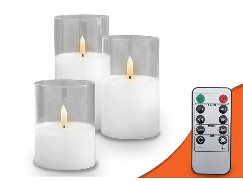 Jedinečné a elegantní dekorativní LED svíčky z bílého skla jsou perfektním řešením pro každého, kdo chce do svého interiéru vnést trochu kouzla a tepla. Naše sada obsahuje tři svíčky různých výšek a dálkový ovladač, který vám umožní pohodlně a rychle přizpůsobit osvětlení vaší náladě a potřebám.