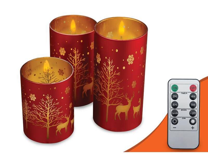 Jedinečné a elegantní dekorativní LED svíčky ze zlatého skla jsou perfektním řešením pro každého, kdo chce do svého interiéru vnést trochu kouzla a tepla. Naše sada obsahuje tři svíčky různých výšek a dálkový ovladač, který vám umožní pohodlně a rychle přizpůsobit osvětlení vaší náladě a potřebám.