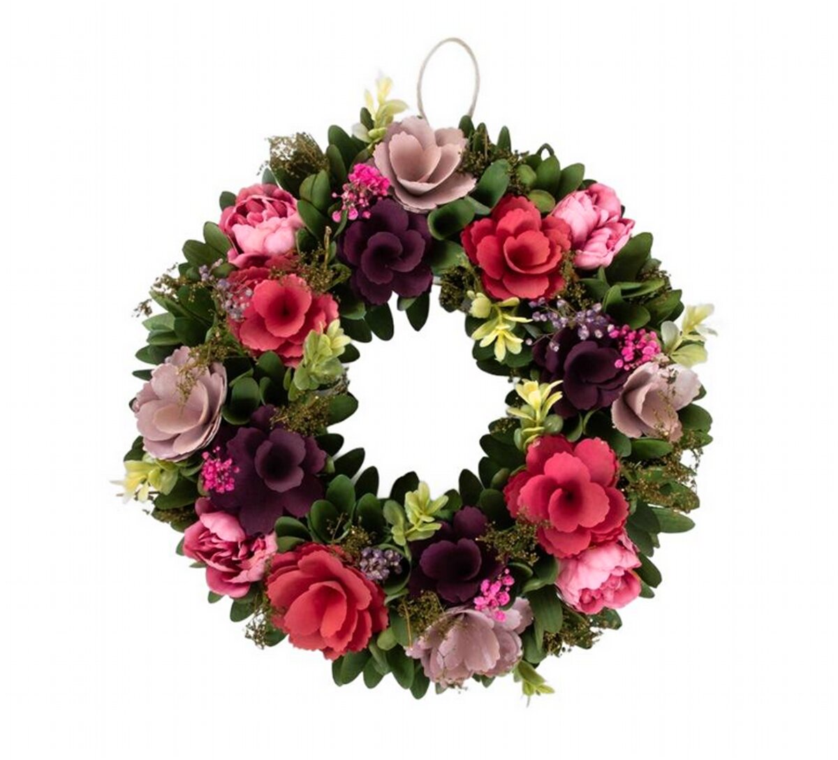 Dekorační věnec | MAZIE | s barevnými květy | 34x34x8 cm | 736445
