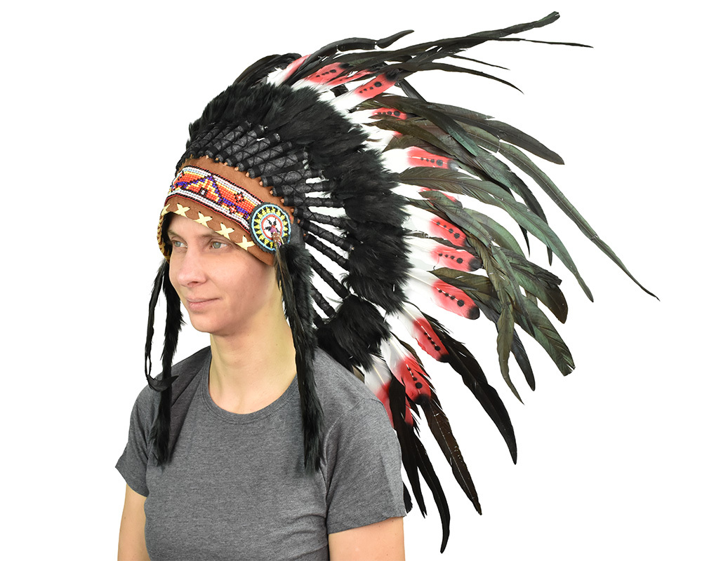 Tato indiánská čelenka je ideálním doplňkem ke kostýmu indiána na karneval, tematickou párty nebo dětskou hru na indiány. Barevné peří a tradiční zdobení dodají autentický vzhled, díky kterému vyniknete na každé akci. Vyrobena z lehkých a příjemných materiálů pro pohodlné nošení.