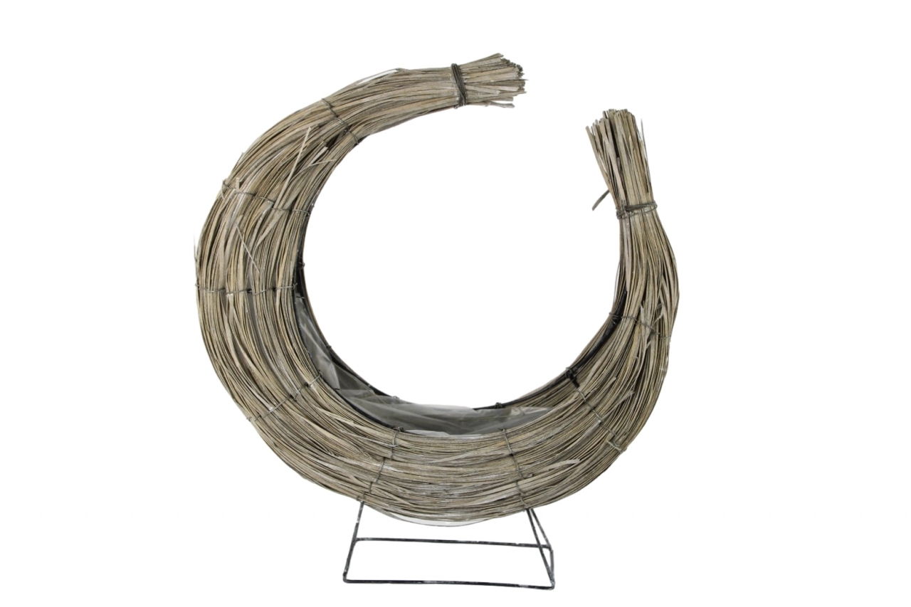 Dekorativní proutěný půlměsíc s igelitovou výstelkou Ideální pro různé druhy aranžmá.Elegantní a neotřelý design.Materiál: proutíBarva: šedohnědáVýstelka: igelit výška: 50 cmšíře: 40 cmhloubka: 14 cm   przeczytaj całość