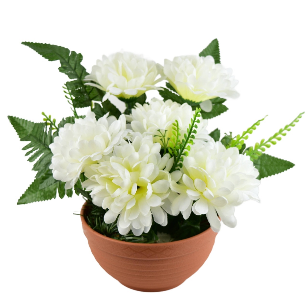 Dušičková miska s krémovými chryzantémami a kapradím 25 x 24 cm