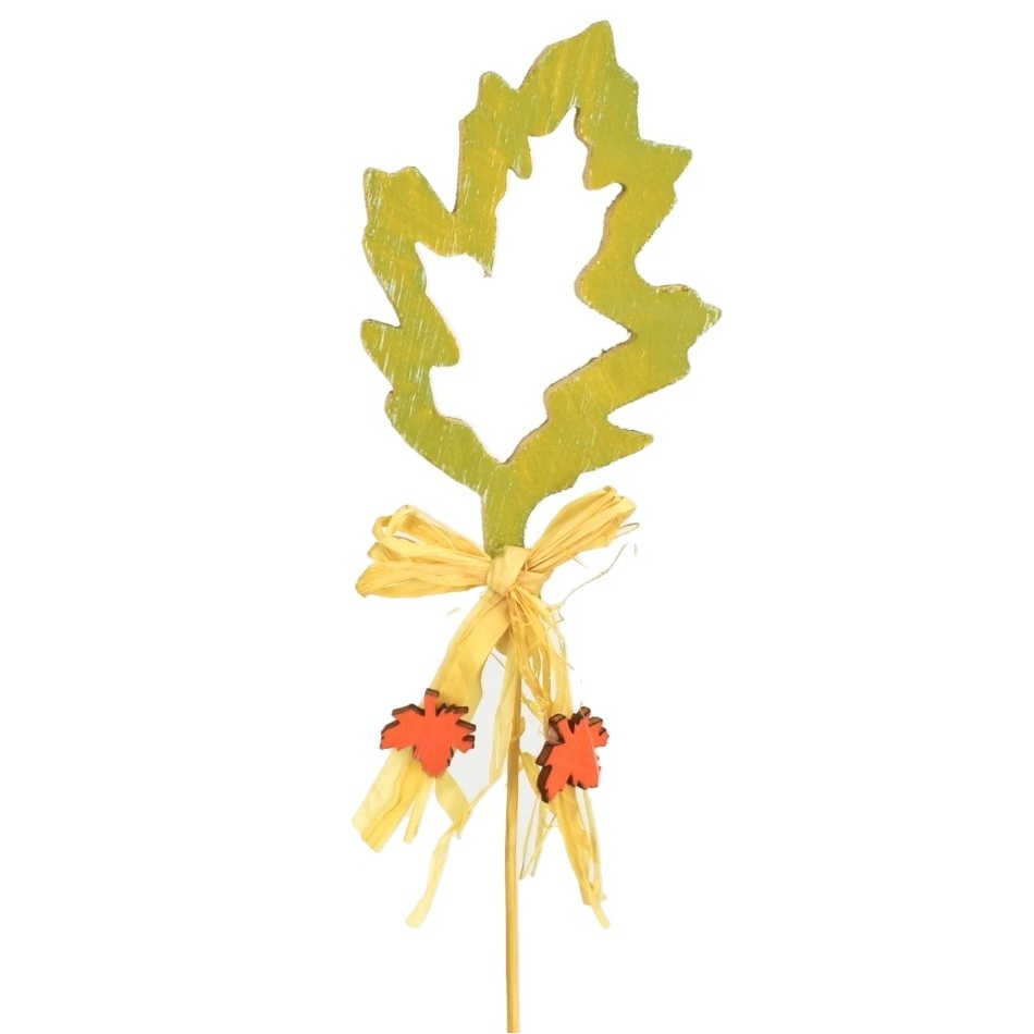 Zápich dřevěný list zelenýMateriál: DřevoBarva: zelenáTvar: ListMotiv: MašleDélka: 13/30 cmPopis produktu:Podzim přichází a s ním krásné barvy, které dokonale oživí vaši domácnost. Nyní můžete zpestřit své prostředí dřevěným zápichem ve tvaru zeleného listu. Tento podzimní design tvoří kombinace...