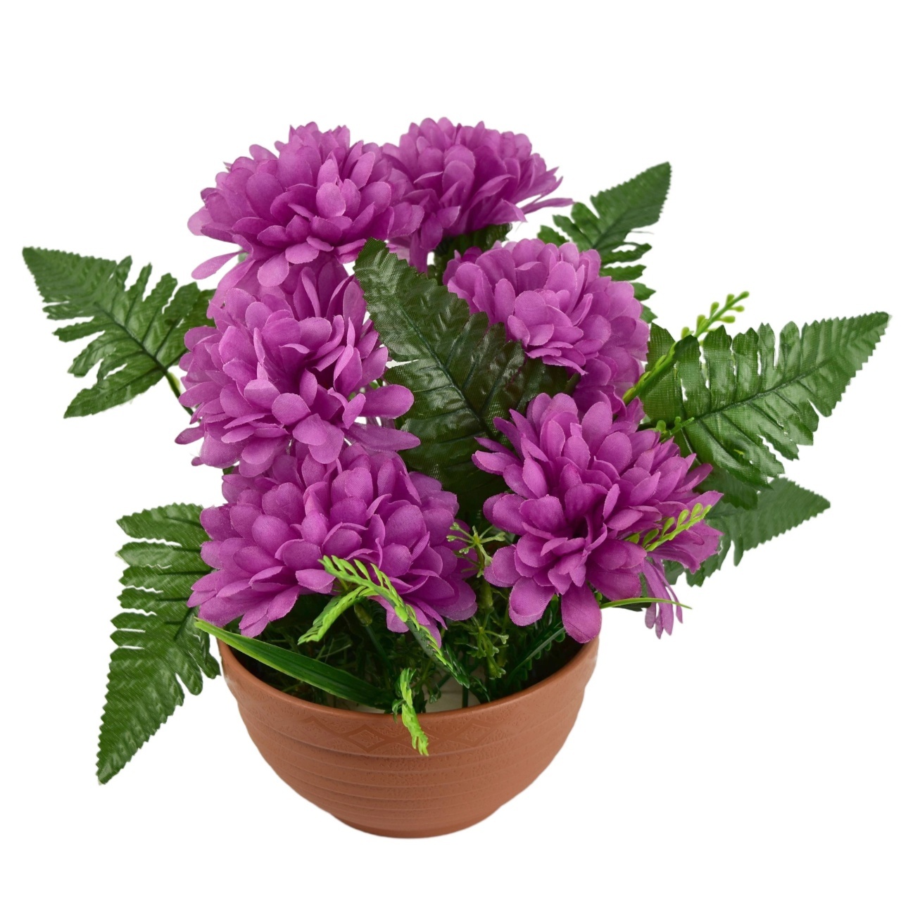 Dušičková miska s fialovými chryzantémami a kapradím 25 x 24 cm