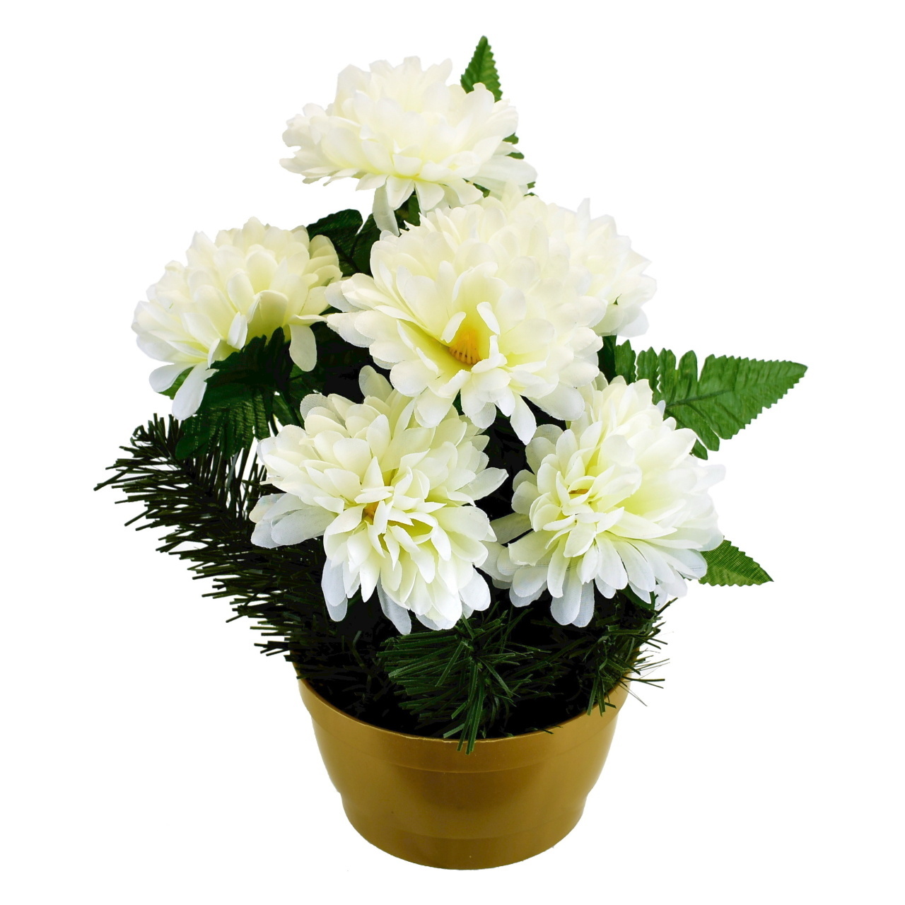Dušičková miska s krémovými chryzantémami a kapradím 23 x 22 cm