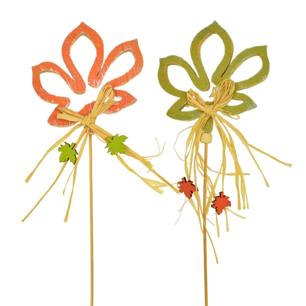 Dřevěný list s lýkovou mašlí zápich oranžový a zelený 30 cm. set 2 ks przeczytaj całość