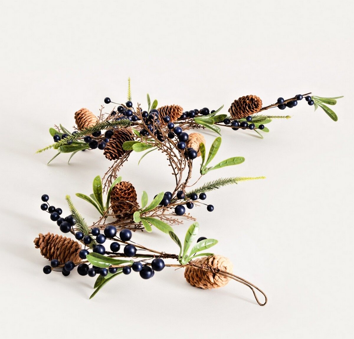 S ozdobnými šiškami, hlohem a zelenými větvičkami. - Délka 120 cm – ideální pro ozdobu stolu, komody nebo okna. - Přírodní barevnost v zimním a vánočním stylu. Vhodná jak pro moderní, tak i klasické interiéry.Girlanda se šiškami a hlohem – 120 cmGirlanda TUNDRA je jedinečná dekorace, která vnáší...