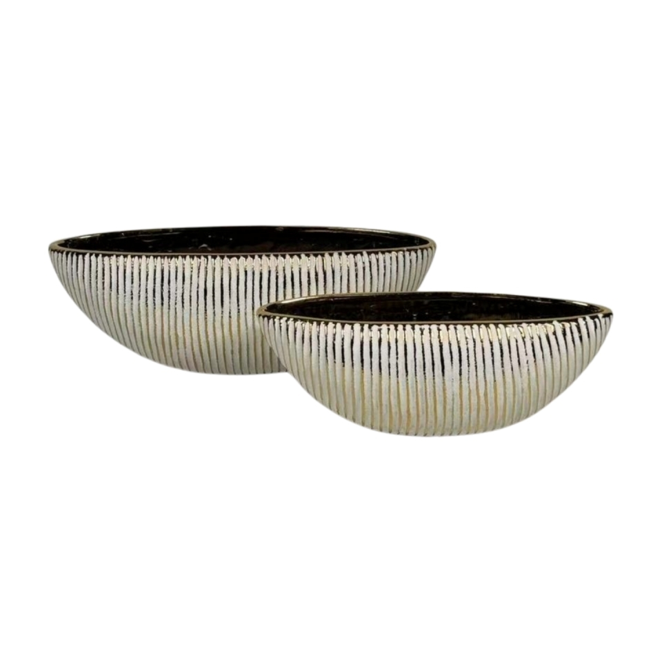 Keramický květináč bílý se zlaceným svislým vzorem - lodička, 28 x 12 x 10 cm