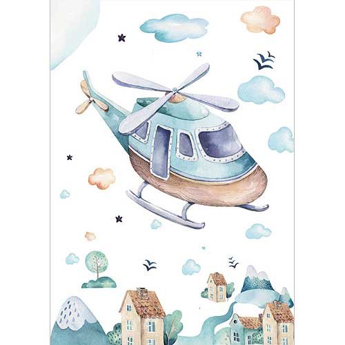 Obrázek pro děti na zeď - vrtulníkPlakát pro kluka s obrázkem vrtulníku. Krásná dekorace do dětského pokojíku, který potěší každého malého kluka.Formát: A3 - 420 x 297 mmMateriál: papír - křídaDodáváno bez rámečku a pasparty.  przeczytaj całość