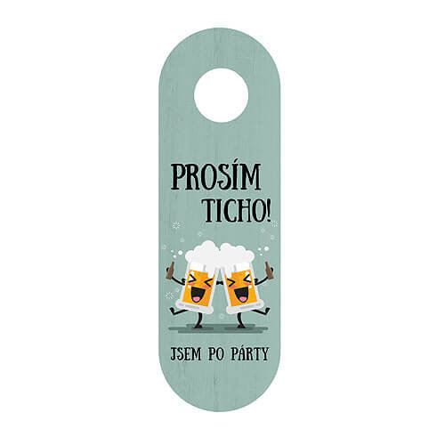 Dřevěný závěs na kliku - jsem po pártyCedulka na dveře pro muže i ženy, kteří nechtějí, aby jej někdo rušil nebo probudil, protože se vrátili z párty nebo oslavy. Originální nápis - Prosím ticho! Jsem po párty.Materiál: překližkaRozměr: 26 x 8 cm  przeczytaj całość
