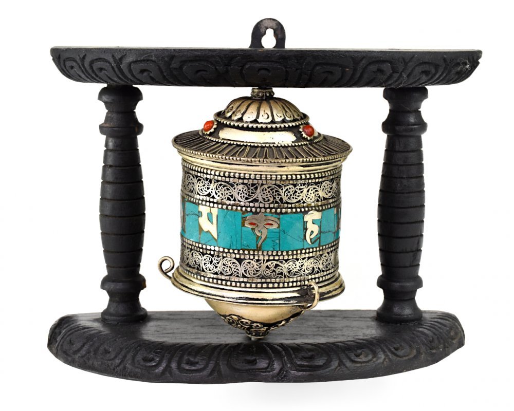 Točíme-li mlýnkem pravou rukou směrem od sebe, uvádíme, podle buddhistů, do chodu modlitby pomáhající nejen nám, ale i celému světu. Modlitební mlýnek je vlastně pouzdro na svitek s mantrami či jinými náboženskými texty, umístěné na žerdi, která umožňuje jeho točení.Rozměry: 13 x 18 x 9,5... przeczytaj całość