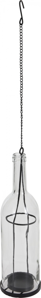 Ten świecznik wykonano z wysokiej jakości szkła połączonego z solidnym elementem metalowym, który służy do bezpiecznego zawieszenia. Projekt w kształcie butelki o średnicy 12,5 cm i długości 45 cm jest nie tylko oryginalny, lecz także funkcjonalny - świecznik łatwo przymocujesz i umieścisz w nim świecę, nie rezygnując ze stylu wnętrza. Industrialny wygląd wnosi nowoczesny i surowy akcent do Twojego wnętrza lub na zewnątrz.