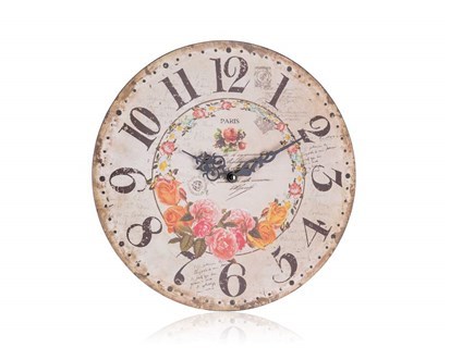 Nástěnné kulaté hodiny ROSE s celoplošným dekorem o průměru 34 cm. Hodinový strojek je napájen jedním kusem baterie AA (není součastí balení). Produkt je ideální dekorací do vašeho bytu nebo stylové kuchyně. przeczytaj całość