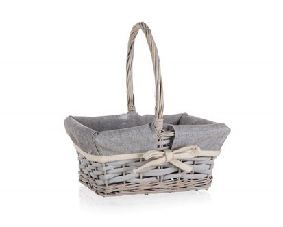 Košík proutěný s držadlem HOME o rozměru 22 x 18,5 x 10 cm je vhodný pouze pro dekorativní účely. Dodáván v šedé barvě obdelníkového tvaru, uvnitř šedá látka s dekorem HOME. przeczytaj całość