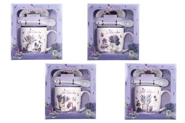 Hrnek se lžičkou konev s levandulí