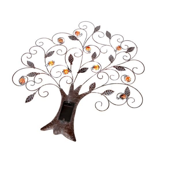Kovová dekorace na zeď s LED na solár - strom, 0/12