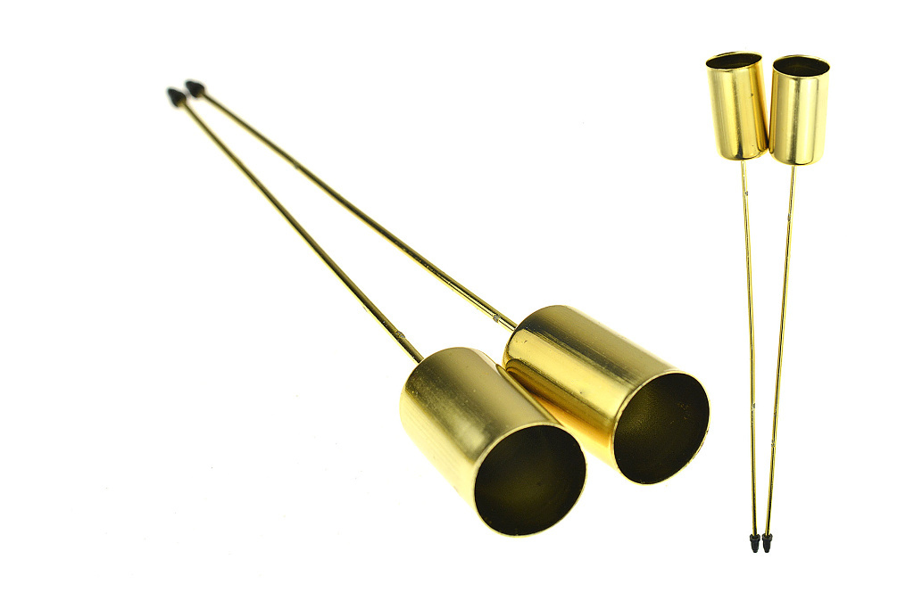 Bodce na úzké dlouhé svíčkyVhodné pro adventní svíčky. Průměr otvoru pro svíčku je 2 cm. Celková délka bodce je 24 cm. Barva zlatá. V balení jsou 2ks bodců. Meteriál kov. przeczytaj całość