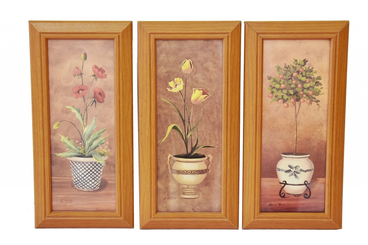 Krásná sada 3 obrázků s květinovým motivem v dřevěném rámečku.Materiál: MDF deska, skloRozměry:1x29x14 cm przeczytaj całość