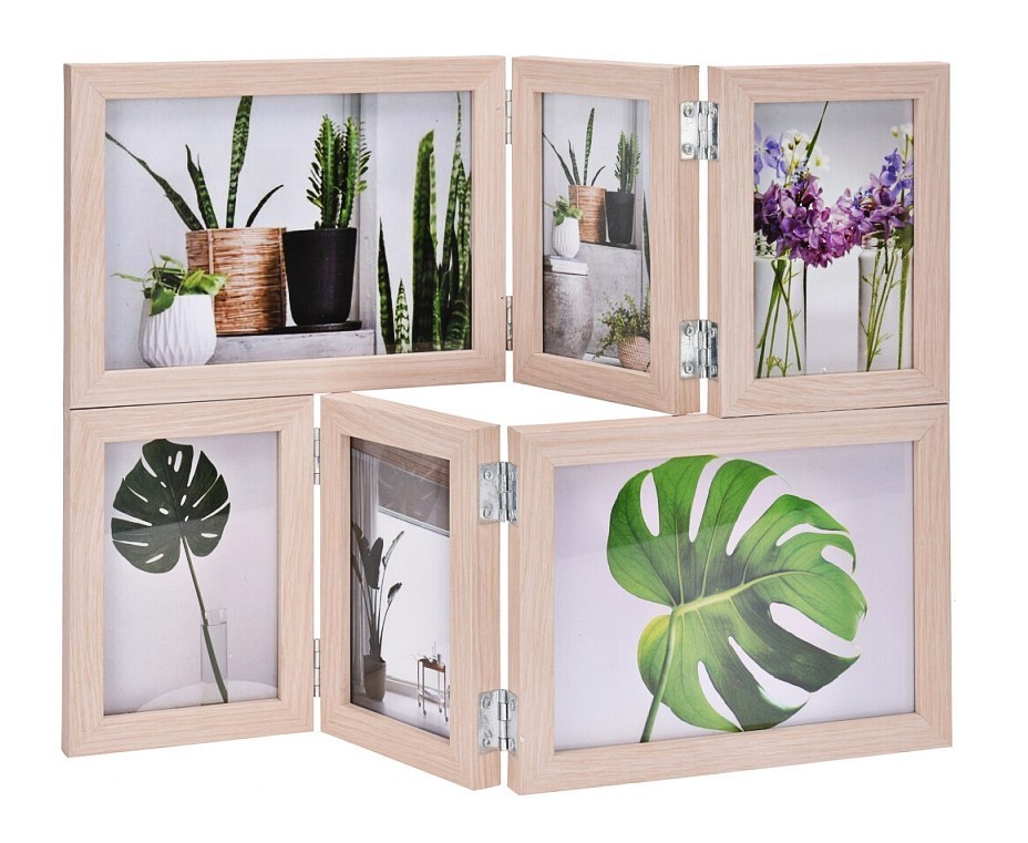 Oblíbený fotorámeček na více fotek v dřevěném provedení. Je vhodný pro umístění až šesti fotografií, 4 vertikálně a 2 horizontálně. Tento fotorámeček není vhodný na zeď, je ideální k postavení, díky možnosti libovolně jej ohýbat a natočit. Ať už s doplněnými fotkami nebo bez nich bude rámeček...