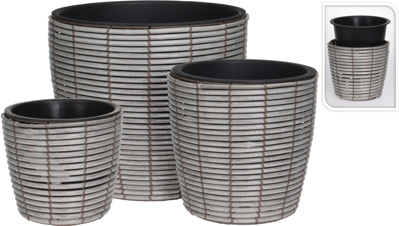 Květináče z umělého ratanu sada 3 ks, šedá
