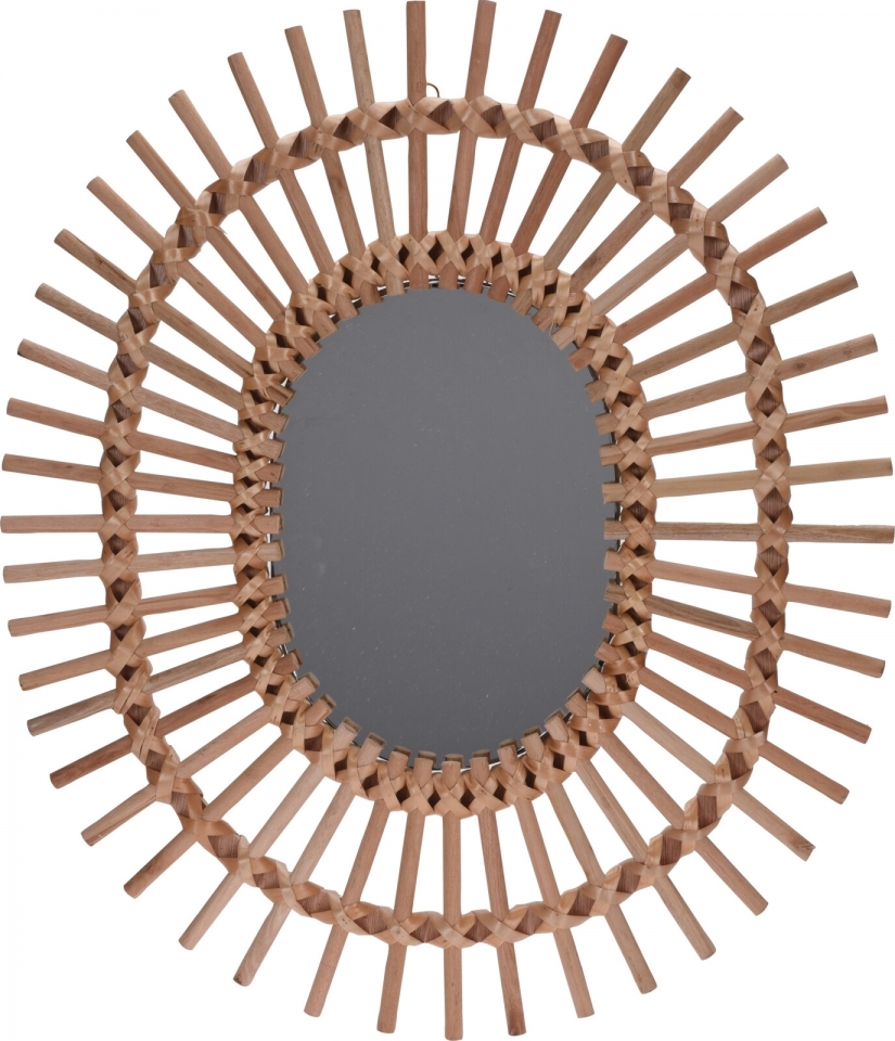 Dekorativní nástěnné zrcadlo připomíná slunce s paprsky. Zrcadlo je univerzálním doplňkem, který kromě praktických hodnot bude i efektní dekorací na zeď.Materiál: přírodní proutí, zrcadloRozměry:výška 58 cmšířka 49 cmtloušťka 2 cm przeczytaj całość