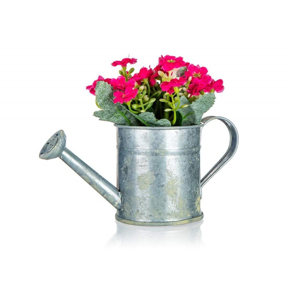Květina s červenými květy v plechovém květináči ve tvaru konvičky 14 x 15 cm, je umělá květina, která slouží jako náhrada živých rostlin a skvěle se hodí pro dekorování bytových prostor. przeczytaj całość
