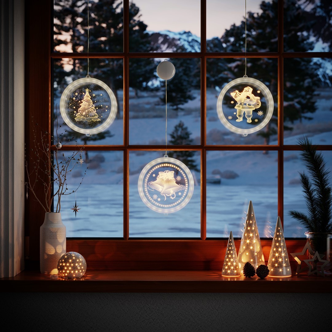 Světelné dekorace na zavěšení na okno v originálních provedení v o 15,5 cm. Dekorace je vyrobena z akrylátu. Závěsný kabel je dlouhý 17 cm. Napájení je tužkovou baterií 3x AAA. Cena je za 1 kus v balení. przeczytaj całość