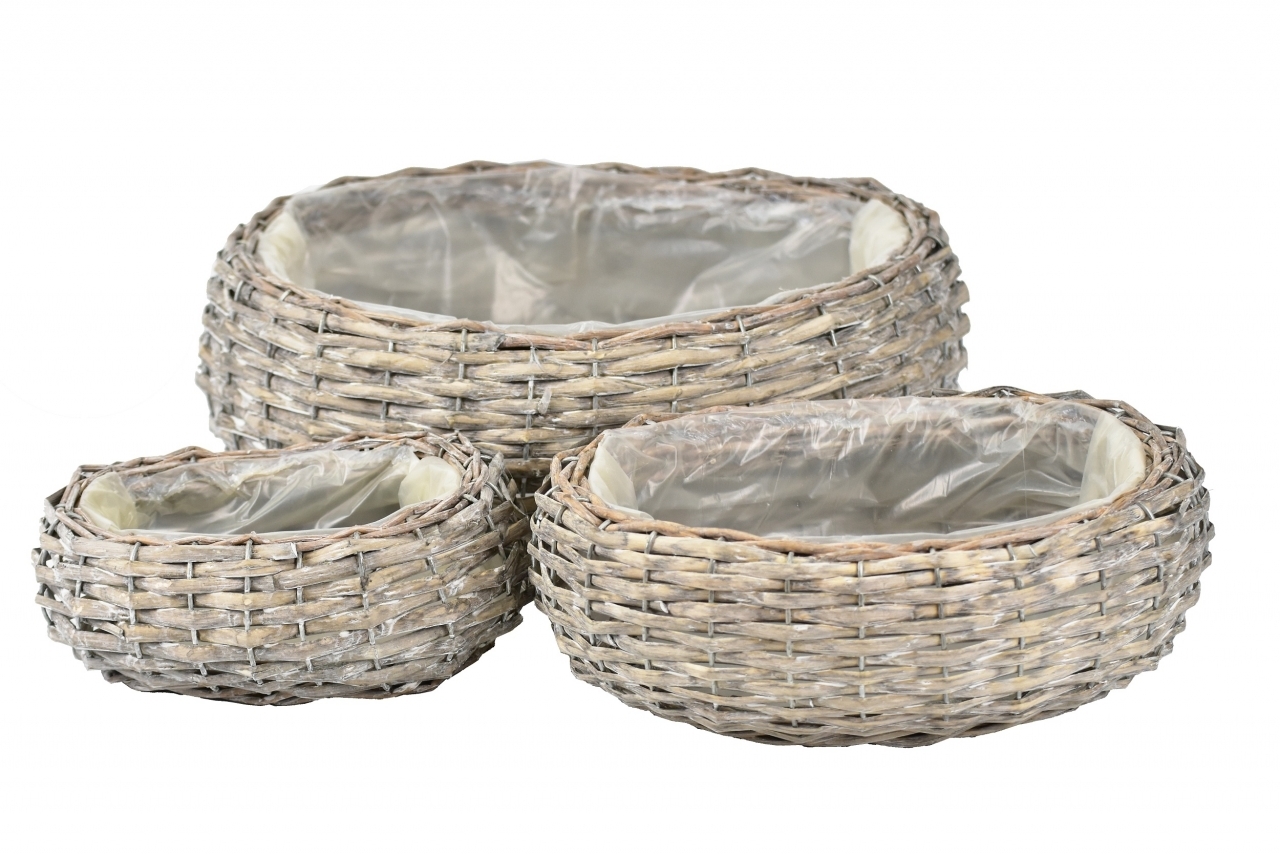 Sada proutěných košíků Flavy dokonale doladí vaše prostory. Igelitová výplň součástí výrobku.Materiál: proutí, PVC výplňRozměry velkého košíku:výška 11 cmšířka 29 cmdélka 35 cmRozměry dtředního košíku:výška 9 cmšířka 22 cmdélka 27 cmRozměry malého košíku:výška 7,5 cmšířka 15 cmdélka 20 cm przeczytaj całość