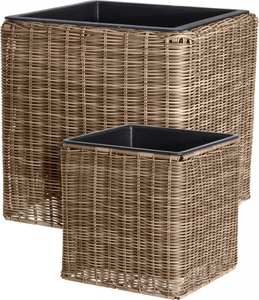 Moderní květináče z umělého ratanu s černým plastovým vkladem. V prodeji sada 2 ks. Klasický hranatý tvar květináče bude skvělým doplňkem každé zahrady, terasy i balkónu.Materiál: plastRozměry:velkývýška 37,5 cmšířka 37 cmhloubka 37 cmmalývýška 27 cmšířka 26 cmhloubka 26 cm przeczytaj całość