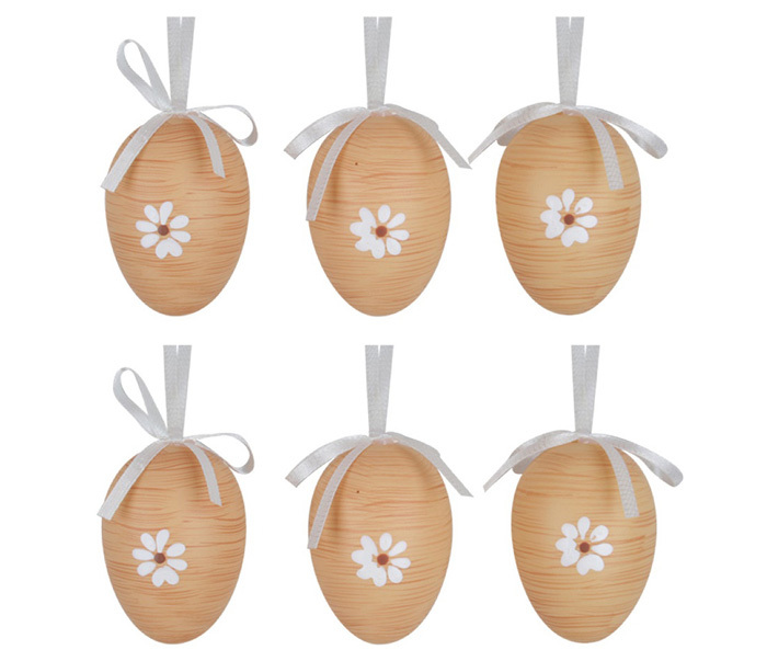 Vajíčka plastová na zavěšení hnědá s kytičkou 6cm, 6ks
