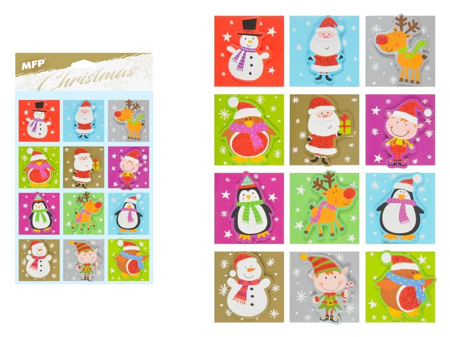 jmenovky na dárky 12ks vánoční 3D glitr 1240808