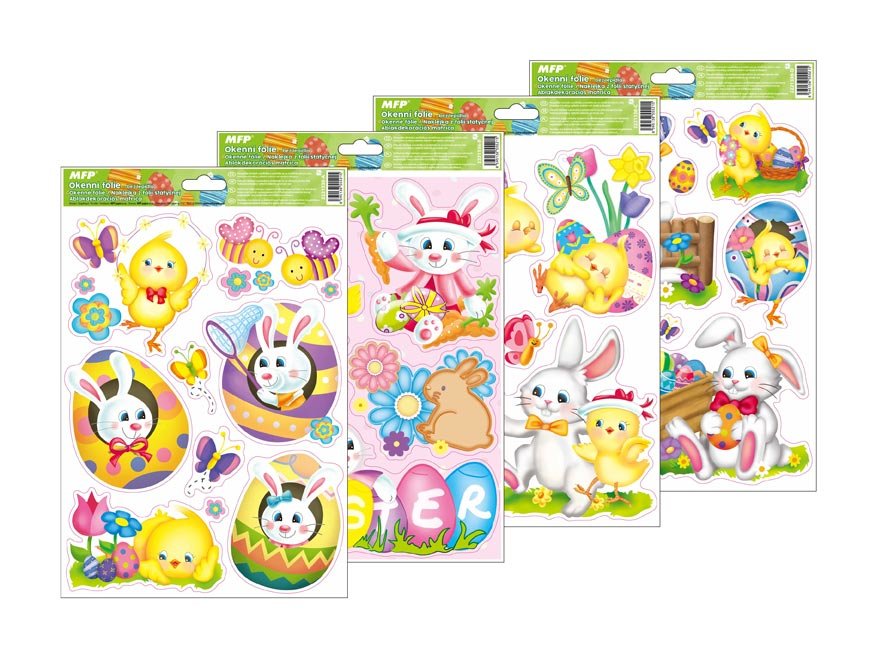 Okenní fólie velikonoční kuřátka, vajíčka, motýlci, zajíčci. Oslavte svátky jara s těmito krásnými samolepkami na okno. Vytvoří Vám kouzelnou velikonoční atmosféru.NÁVOD:1. Sloupněte obrázek z podložky a umístěte na čisté, případně navlhčené sklo stranou, která byla na podložce.2. Obrázek...