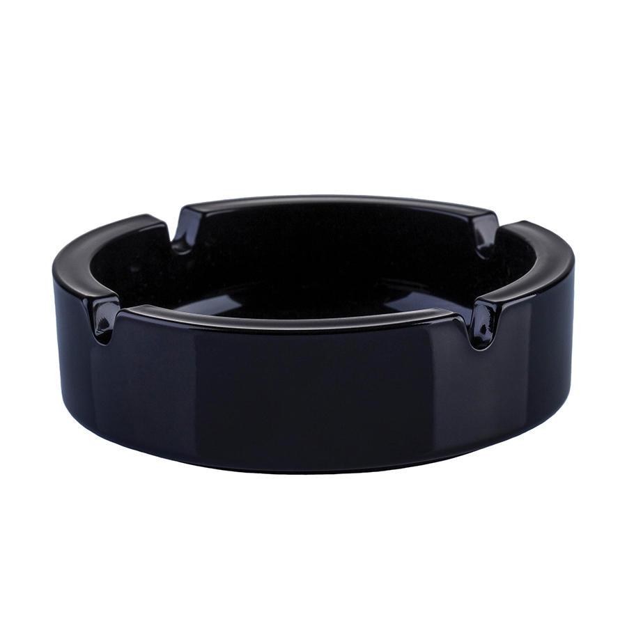 Szklana, grubościenna popielniczka z wycięciami na 4 papierosy. Popielniczka nadaje się do sztaplowania. Kolor: czarny. Średnica 140 mm, wysokość 36 mm. Ilustracyjne zdjęcie w mniejszym rozmiarze. EAN 3800864012846 przeczytaj całość