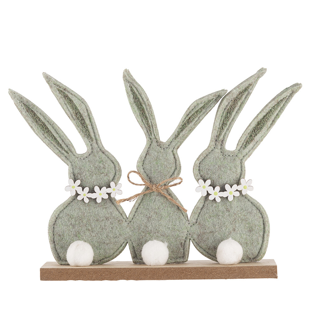 PLSTĚNÁ FIGURKA 3 ZAJÍČCI 21X4X15CM ZELENÁ