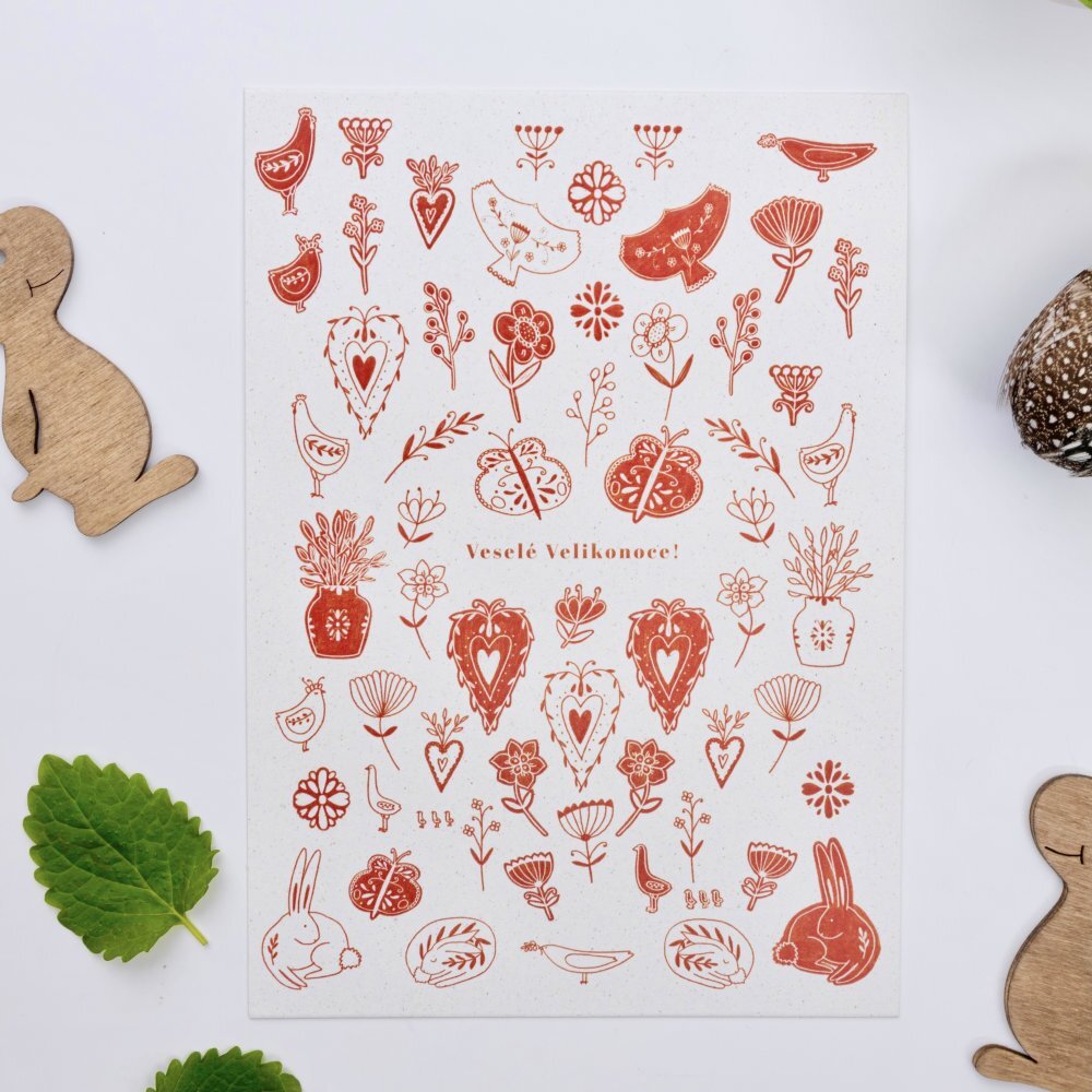Be Nice EKO Pohled Veselé Velikonoce - červený