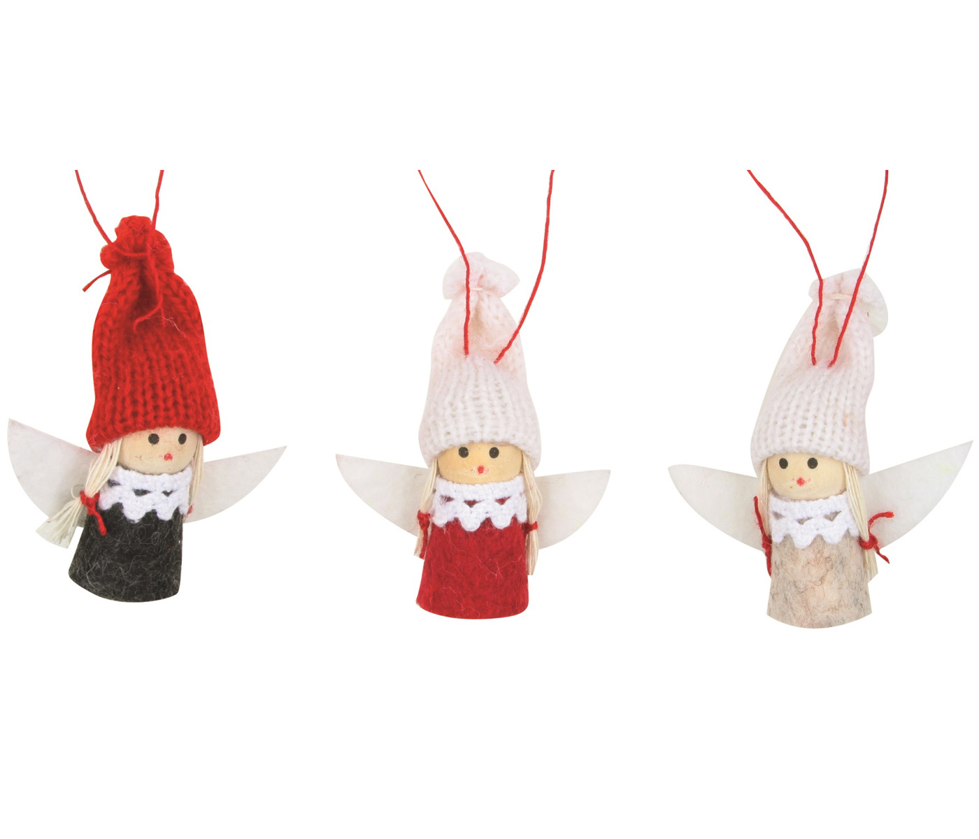 Anděl v pletené čepici 5,5cm na zavěšení, 4517