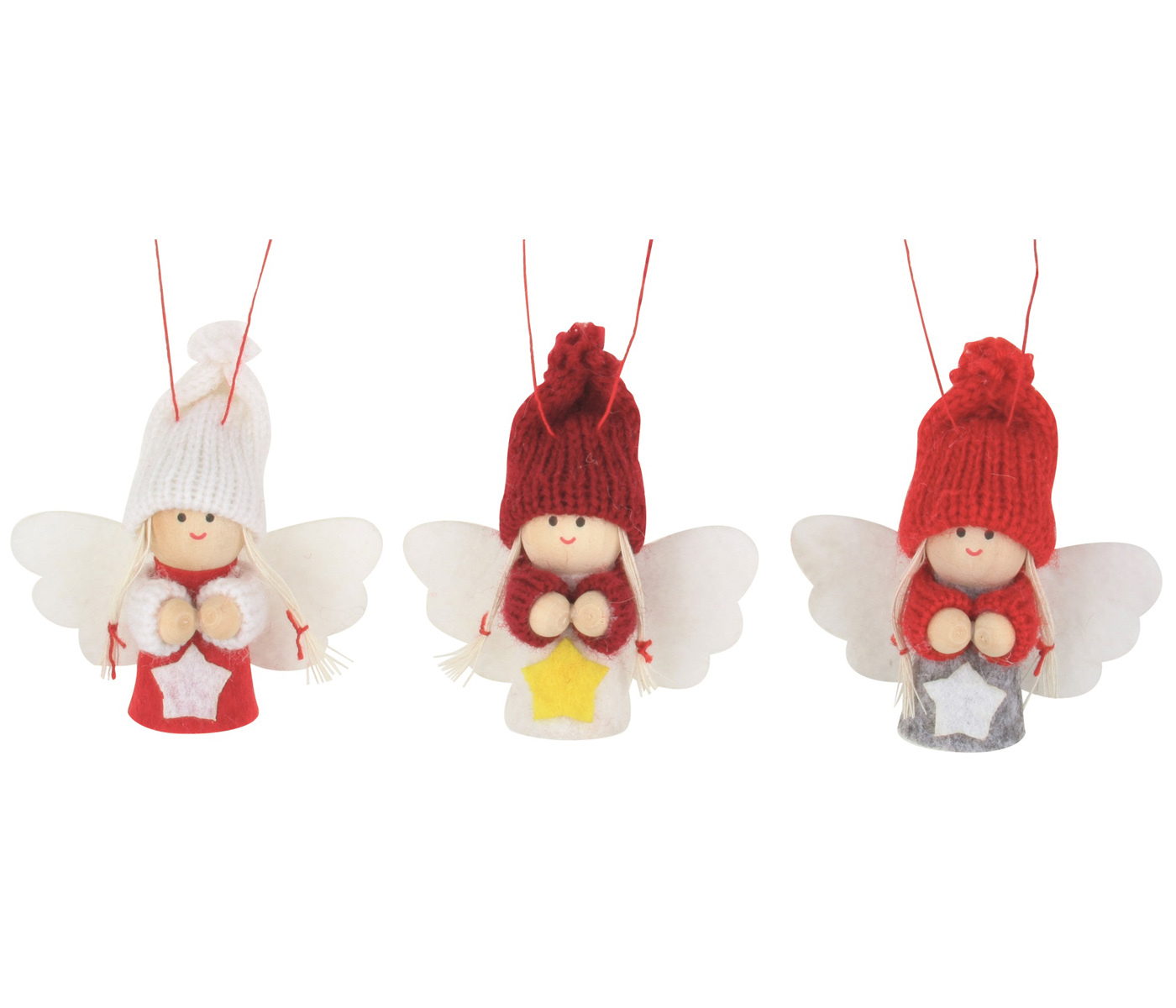 Anděl plyšový s hvězdou v pletené čepici 7,5cm na zavěšení, 4522