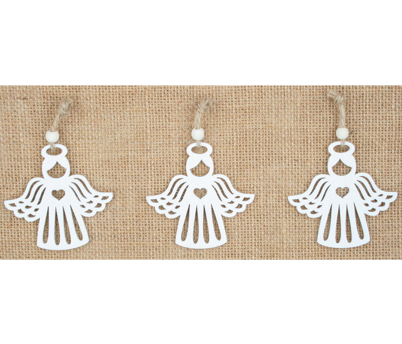 Anděl dřevěný bílý 6,5 cm - na zavěšení 3 ks